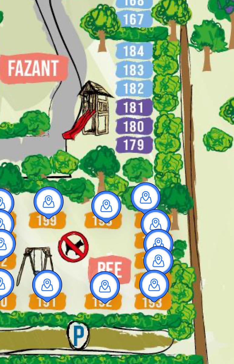 Nieuwe royale camperplaatsen van 150 m2 met een verhard deel voor het plaatsen van de camper.